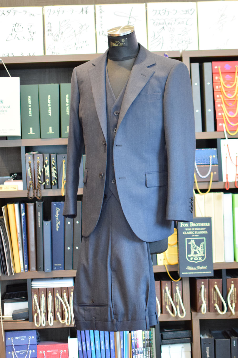 【新規のお客様限定企画】のブルーグレー生地で仕立てさせていただいた3P